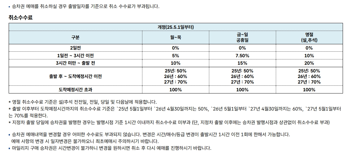 - 예매 당일 또는 출발일 2일 전까지 취소: 수수료 없음